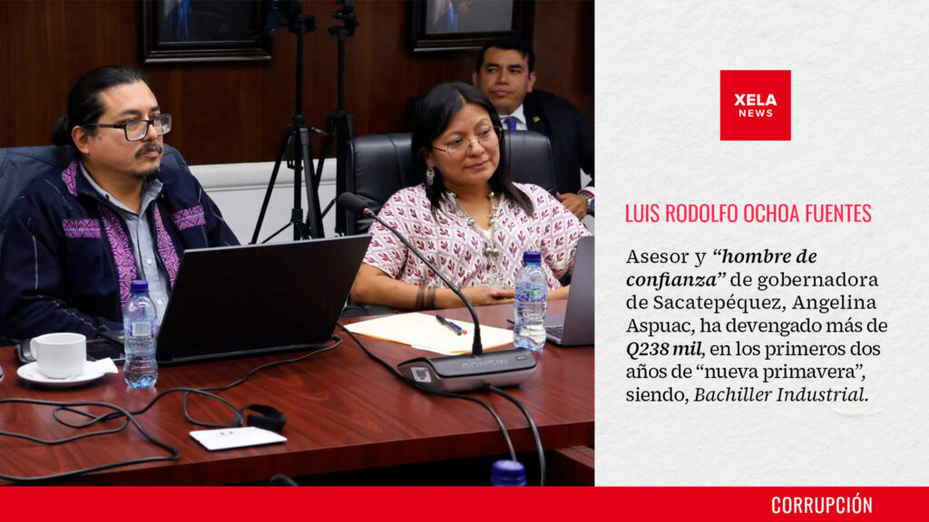 Corrupción no se detiene en el inicio del tercer año de gobierno de “la nueva primavera” de Bernardo Arévalo, ya que hoy podemos evidenciar que el señor, LUIS RODOLFO OCHOA FUENTES, asesor y “hombre de confianza” de la gobernadora departamental de Sacatepéquez, Angelina Aspuac, ha devengado más de Q238 MIL, en los primeros dos años de este gobierno, siendo “Bachiller Industrial” por administrar las redes sociales de la representante del ejecutivo en este departamento.